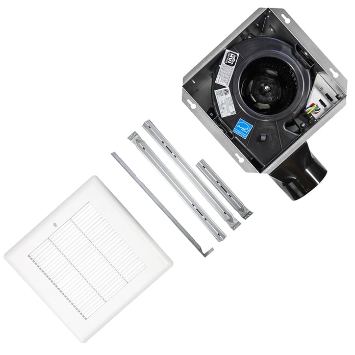 QuFresh BC Series Bath Fans are a cost-effective, yet modern solution for home or commercial use with fans from an 80 - 100 CFM operation for continuous odor ventilation, mildew prevention, and moisture reduction in a bathroom or other room needing a ventilation fan system. Constructed using a galvanized steel housing and 4 in. polymeric duct connector with a spring-installled polymeric grille cover. This exhaust fan includes hanger bars and mounting tabs for installation anywhere between 16 in. to 24 in. on-center joists and a plug-in motor with wiring knockouts on the housing. The PSC motor requires little maintenance and has an unrivaled quiet, low sone operation in this series from 0.8 to less than 0.3 sones. Order with a humidity sensor (BCHUMSR) or motion sensor (BCMOTSR) to customize your vent fan, and a radiation damper (BGCRD) to meet local code requirements.