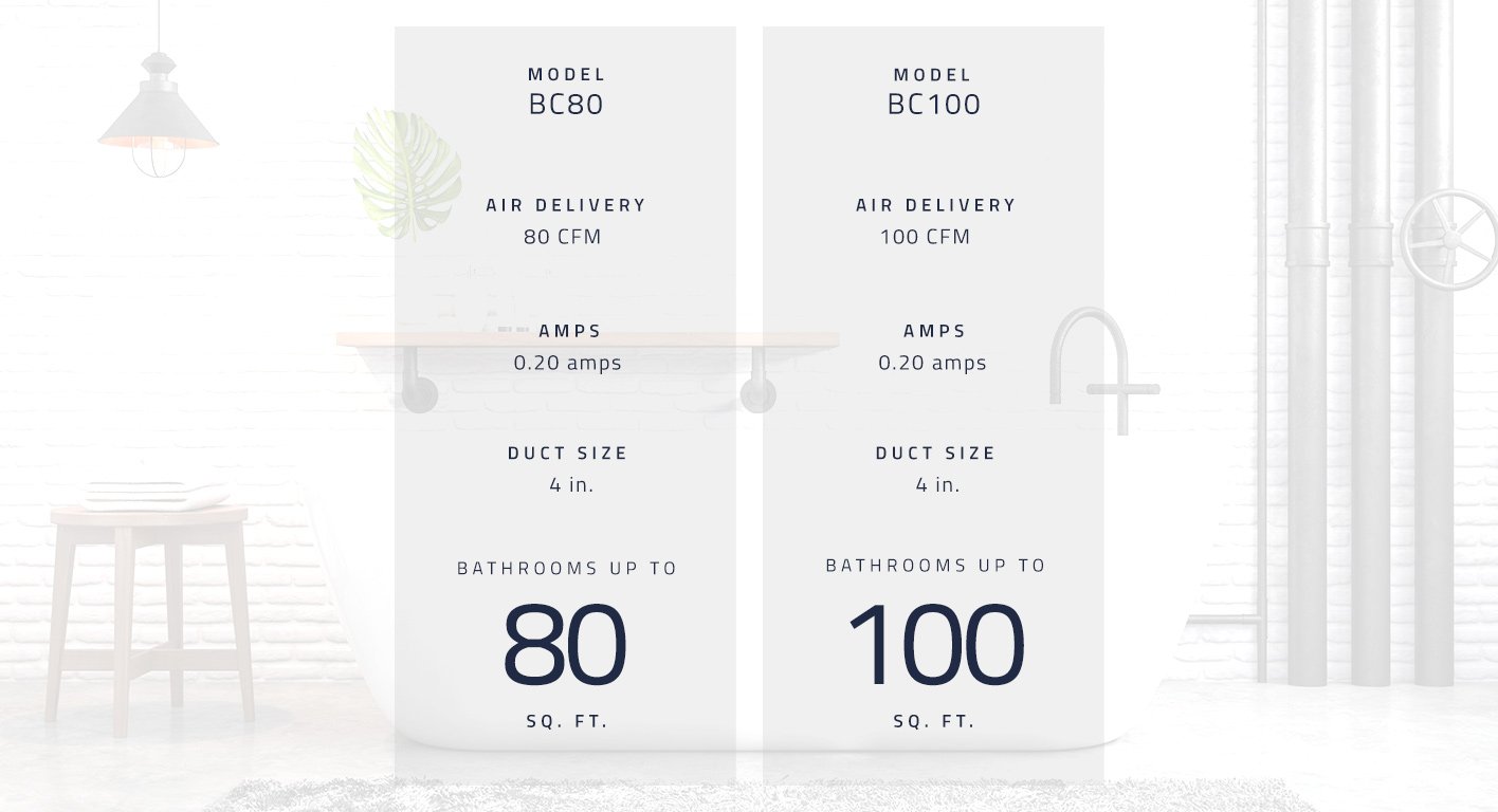 A warm shower is great, but all that unventilated steam and moisture can set up your bathroom for mold and mildew (and the damaging after-effects of removing it). Installing a BC Series bath fan aids in removing this moisture in bathrooms ranging from 80 - 100 sq. ft.