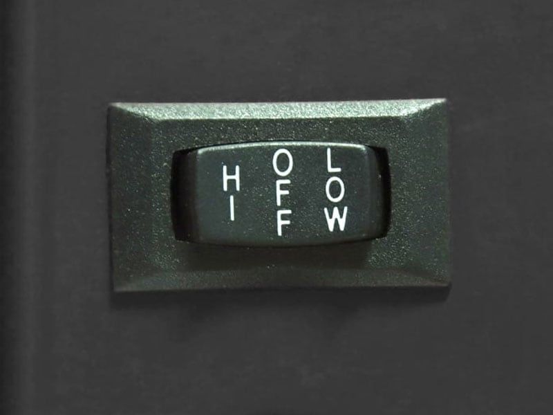 - Easily accessible rocker switch on rear grille for hi-off-low speed operation