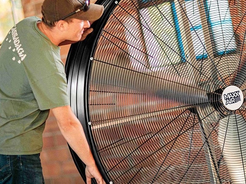 Drum fans move significantly more air than standard fans and are built for larger spaces and heavier-duty use. A high-velocity drum fan like the Maxx Air model is the better choice when you need powerful, consistent airflow in industrial or jobsite environments.