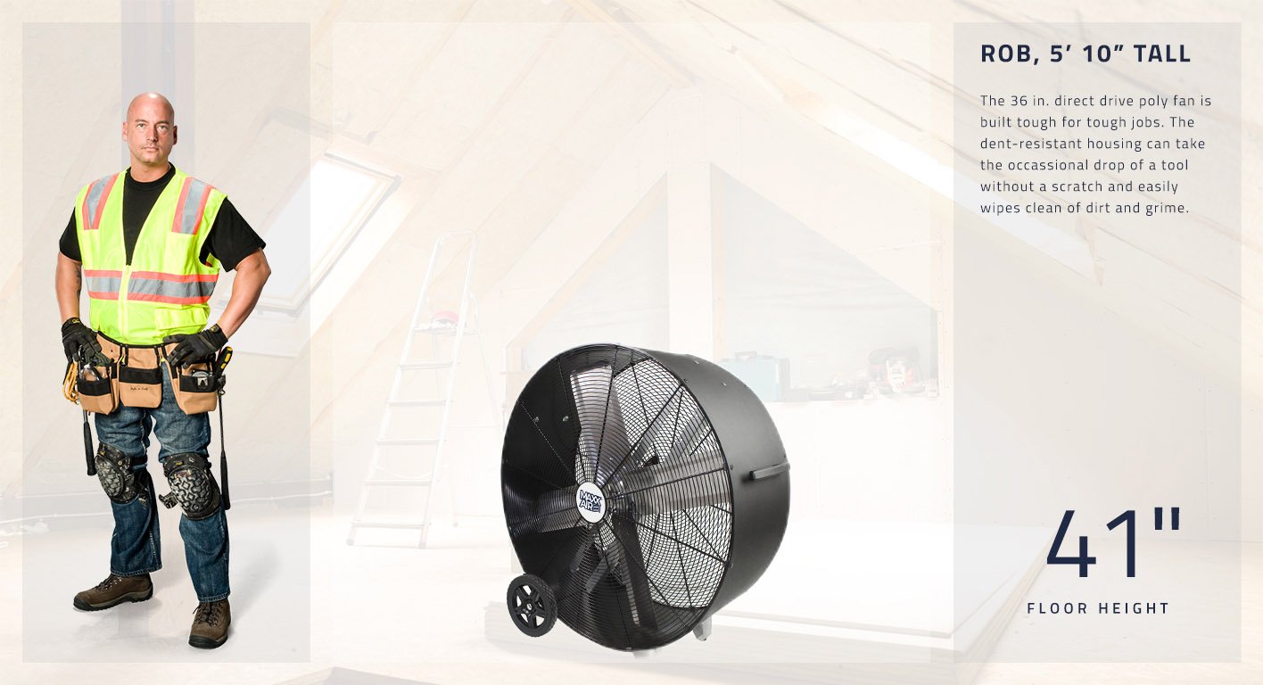 Experience a cooling solution only Maxx Air can provide! This Maxx Air Pro FLEX fan can be used for construction site jobs, on the factory or warehouse floor, in a large gym, commercial auto garage, and in other large spaces needing serious air circulation. Our Pro FLEX fans are constructed of a heavy duty polyethylene housing for superior impact resistance and angled struts for added internal strength, making this air circulator one of the most durable on the market. It arrives fully assembled and is designed to be portable with built-in handles and 9 in. wheels and arrives fully assembled, ready to work. The 7.5 ft. power cord conveniently wraps around the handle when it's not needed, and is long enough to allow for the perfect placement of the air mover in your room while still allowing you to reach an outlet. Choose between hi and low speed options to customize your cooling experience.