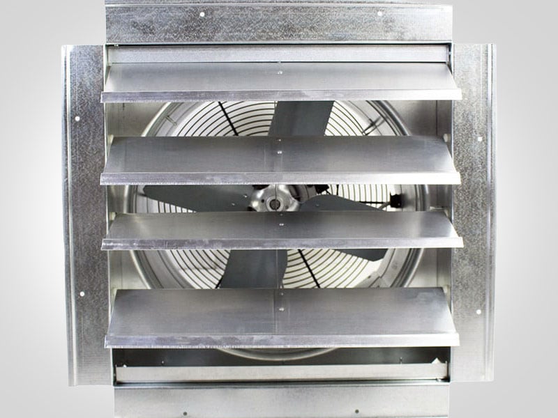 They are commonly installed in garages, workshops, barns, warehouses, and grow rooms. The automatic shutter opens when the fan runs and closes when it stops, preventing outside air, rain, and pests from entering the building.