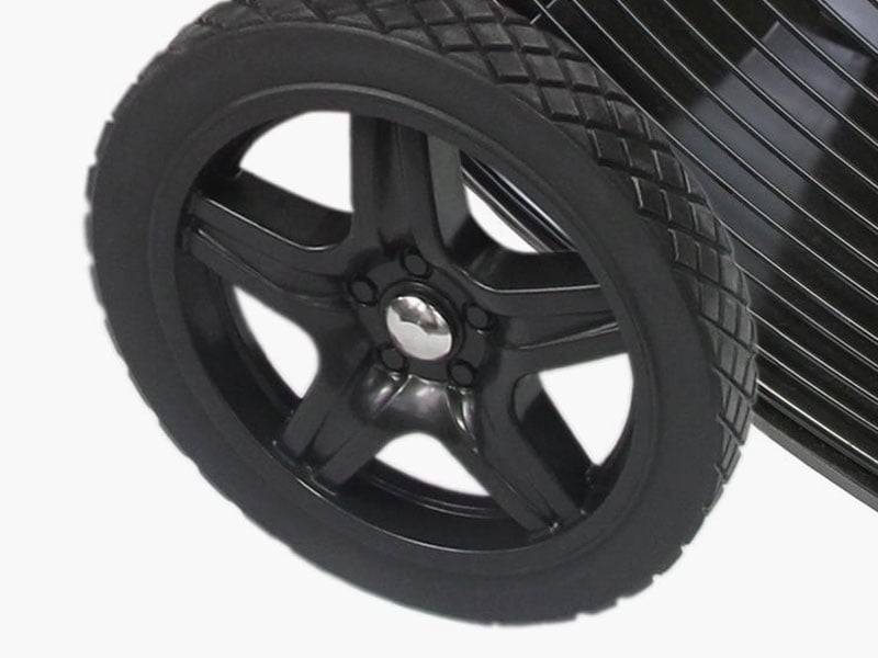 - 9 in. spoked diamond tread wheels and built-in handles for easy mobility