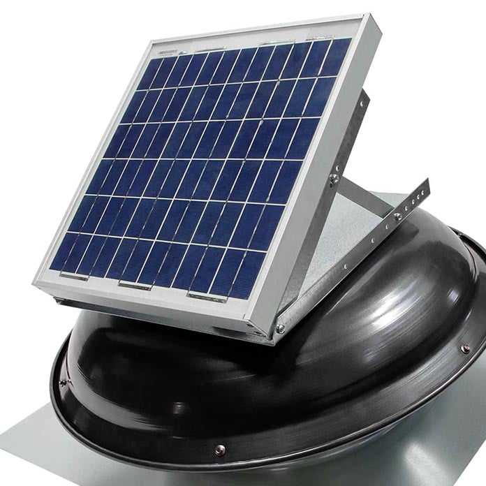Maxx Air Solar Roof Mount Ventilators are built for ventilating residential attic spaces up to 1,500 sq. ft. This solar attic fan features a steel dome and pre-mounted solar panel with tempered cell casings to create a unit that is resistant to impacting wind, hail, and flying debris. Install involves no wiring into any AC power source, mounts to your roof with 6 pre-punched anchor points for stability, and has a tiltable panel to achieve the ideal amount of sun exposure. A well-ventilated attic offers year-round benefits, making your home easier to cool and helping to prolong the life of roofing components during the summer while preventing mold and mildew in the winter. Our solar exhaust fan is an eco-friendly ventilation option and costs nothing to operate, saving you money! Link additional solar panels (CXSOLPANEL) for more efficient operation and add a thermostat (XXSOLARSTAT) to set an operating threshold for your roof fan.
