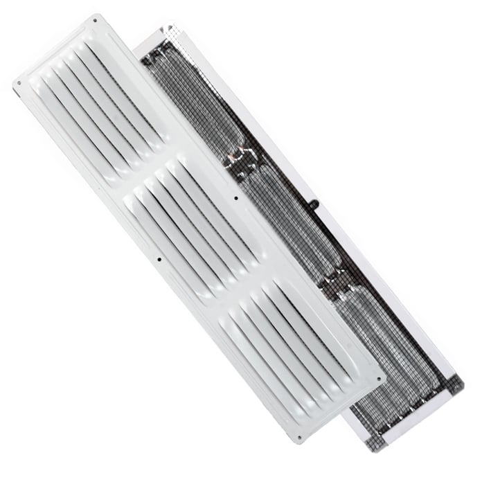 Soffit and Under Eave Vents are an efficient solution for residential home attic ventilation that allows for a constant flow of air in and out of the attic when paired with exhaust vents. Maxx Air louvered soffit and under eave vents are constructed of aluminum metal and have a mesh screen to deter animals from entering your house's attic space. Easily install these lightweight vents on the exterior, lower portion of the roof (soffit or under eave) using nails or screws to secure in place. Intake vents help to create a constant upward draft of air which helps to equalize attic temperature with the temperature in the living space below. This constant airflow assists in reducing the strain on cooling and heating systems, and also helps the efficiency of ceiling insulation, making it a worthwhile home improvement project and a great investment in your home's overall health.