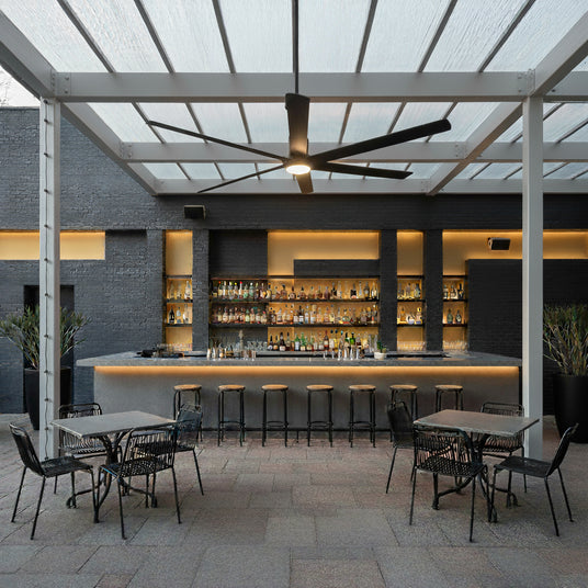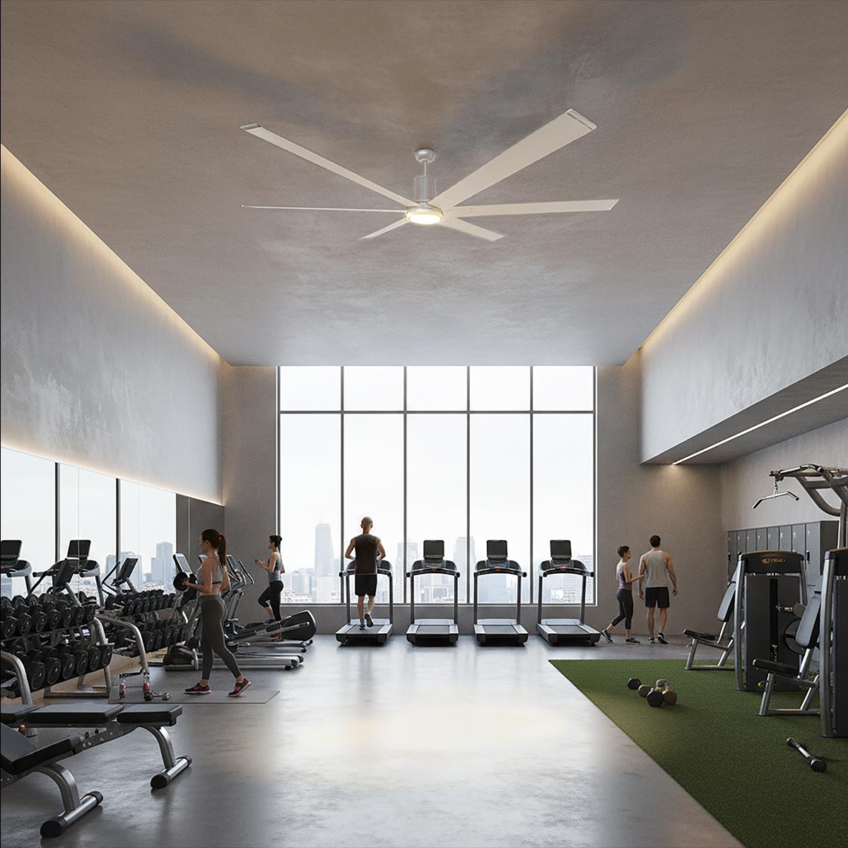 Installing in a commercial setting? This series covers 2,000 - 2,700 sq. ft. per unit, meaning you can purchase fewer fans to cover the same area when compared to smaller residential-grade ceiling fans.