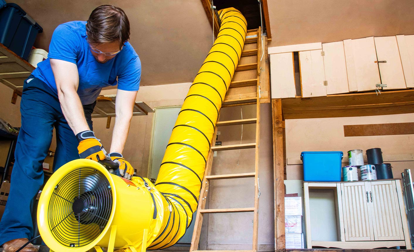 Ventilating large enclosed areas like warehouses, production floors, and tents