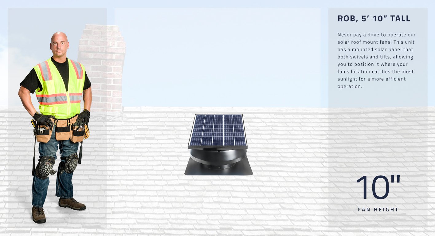 The 14 in. Maxx Air Solar Roof Mount Ventilator is built for ventilating residential attic spaces up to 1,200 sq. ft. This solar attic fan features a galvanized steel dome, brushless DC motor for long life and ultra-quiet operation and a fully adjustable mounted solar panel to create a unit that is durable and achieves a more efficient operation by dialing in your perfect panel position to catch the most Sun exposure. Install involves no wiring into any AC power source and mounts to your roof using standard tools. A well-ventilated attic offers year-round benefits, making your home easier to cool and helping to prolong the life of roofing components during the Summer while preventing mold and mildew in the Winter. Our solar exhaust fan is an eco-friendly ventilation option and costs nothing to operate, saving you money.
