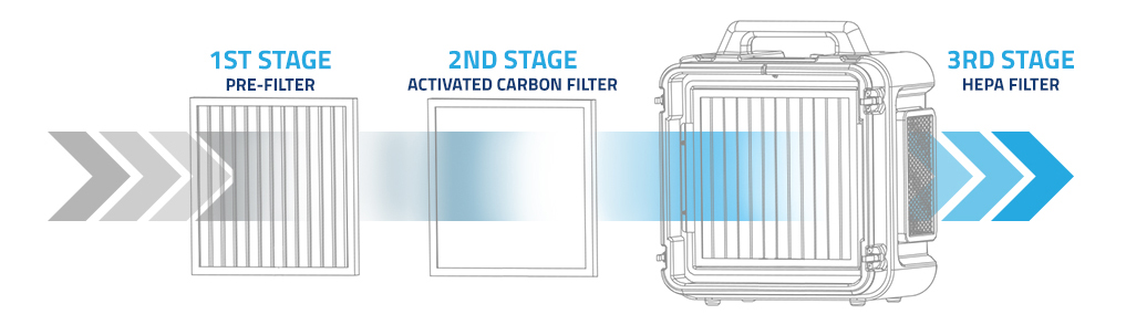 Installation: | Replace by opening air scrubber's easy latch cover |