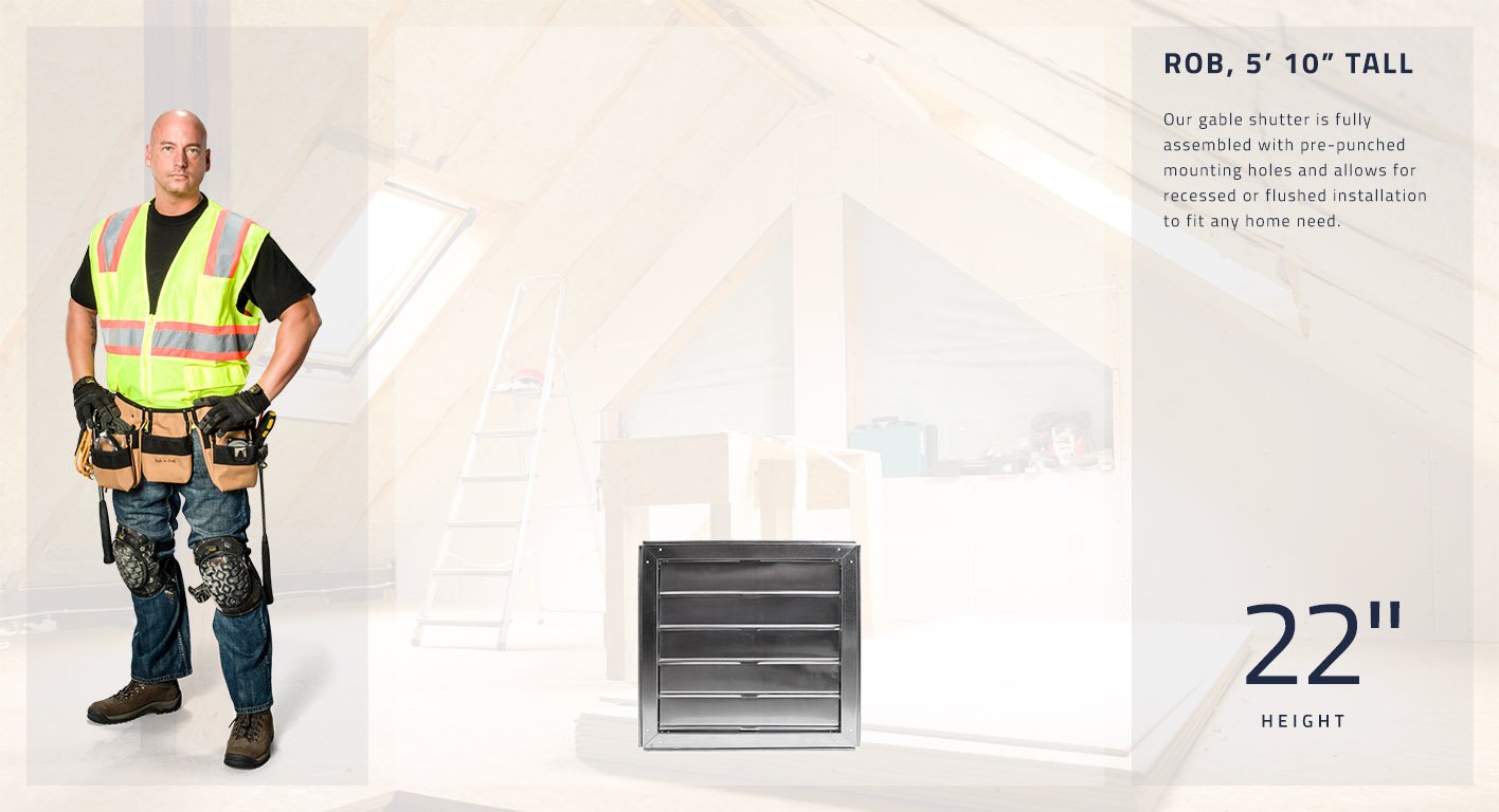 Creating a balanced attic ventilation system is necessary for the overall health of any home. Our gable shutter sits flush on the outside wall to finish your gable fan installation and offers strong, dependable weather and pest protection for your attic and attic fan during all seasons.