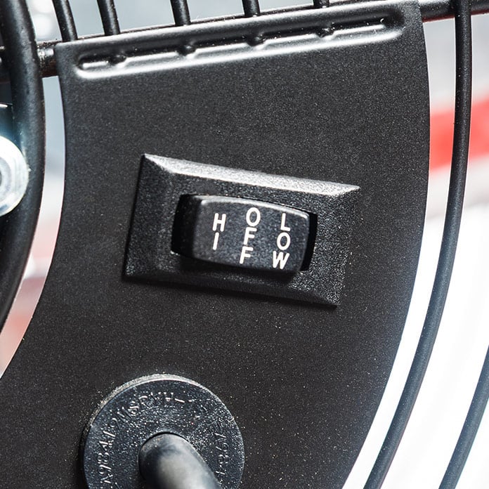 Our barrel fans operate via a standard electrical outlet with a 3 prong plug. Enjoy two speed choices to create a cooling breeze throughout the whole room.