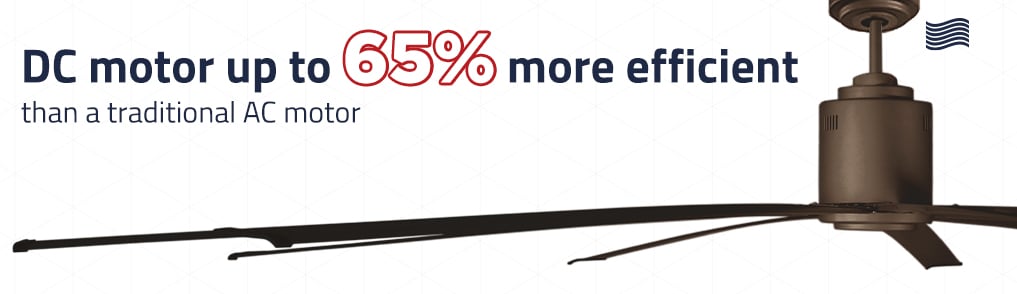 Trash your energy hogs! Our industrial-grade ceiling fan line uses a DC motor which is up to 65% more efficient than AC motors, runs longer (and cooler), and features a stabilized current for reduced motor noise to equal a near-silent operation.