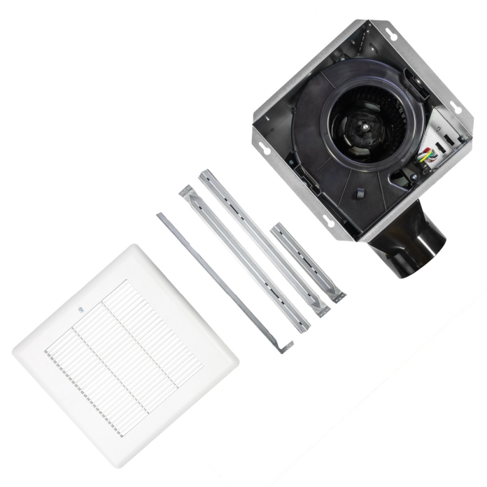 QuFresh BC Series Bath Fans are a cost-effective, yet modern solution for home or commercial use with fans from an 80 - 100 CFM operation for continuous odor ventilation, mildew prevention, and moisture reduction in a bathroom or other room needing a ventilation fan system. Constructed using a galvanized steel housing and 4 in. polymeric duct connector with a spring-installled polymeric grille cover. This exhaust fan includes hanger bars and mounting tabs for installation anywhere between 16 in. to 24 in. on-center joists and a plug-in motor with wiring knockouts on the housing. The PSC motor requires little maintenance and has an unrivaled quiet, low sone operation in this series from 0.8 to less than 0.3 sones. Order with a humidity sensor (BCHUMSR) or motion sensor (BCMOTSR) to customize your vent fan, and a radiation damper (BGCRD) to meet local code requirements.