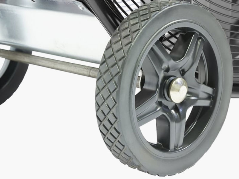 - 7 in. spoked rubber wheels and built-in handle make your fan easily portable