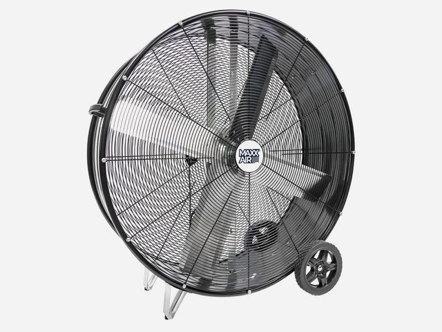 A drum fan is ideal for large spaces that need powerful airflow, including warehouses, industrial facilities, workshops, garages, basements, and construction sites. The Maxx Air industrial drum fan is designed to handle tough conditions while delivering high-velocity air for cooling, drying, and ventilation.