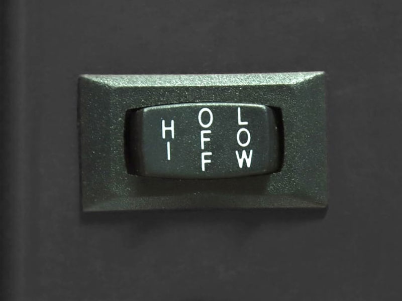 Easily accessible SWITCH for hi-off-low speed operation