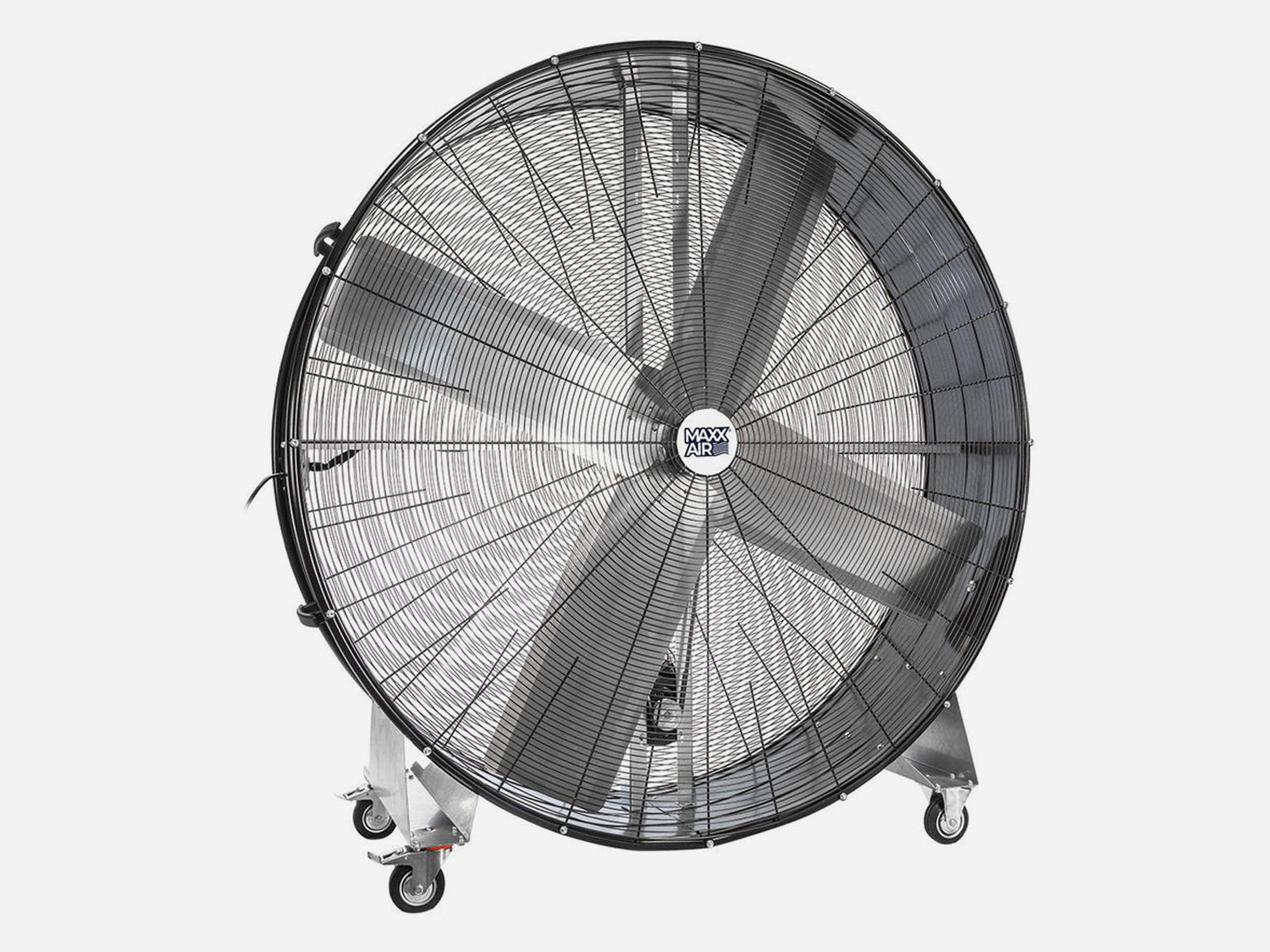 Maintenance is simple. Always unplug the fan before cleaning, then wipe the blades and steel housing with a damp cloth. Keeping vents free of dust will help ensure long-term performance from your Maxx Air industrial drum fan.