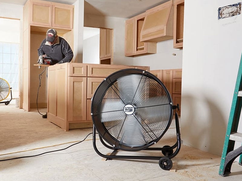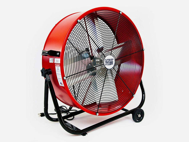 Drum fans move significantly more air than standard fans and are built for larger spaces and heavier-duty use. A high-velocity drum fan like the Maxx Air model is the better choice when you need powerful, consistent airflow in industrial or jobsite environments.